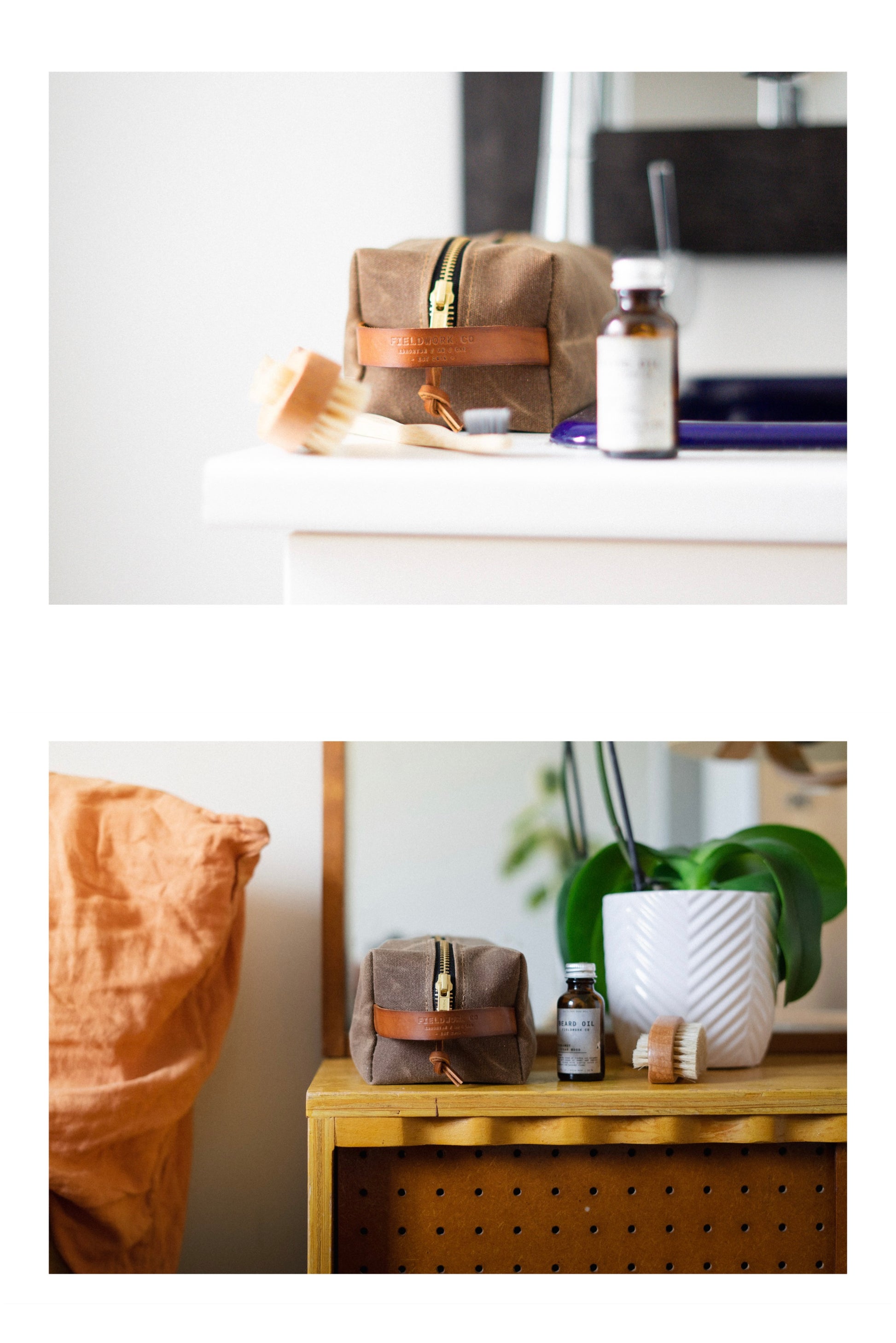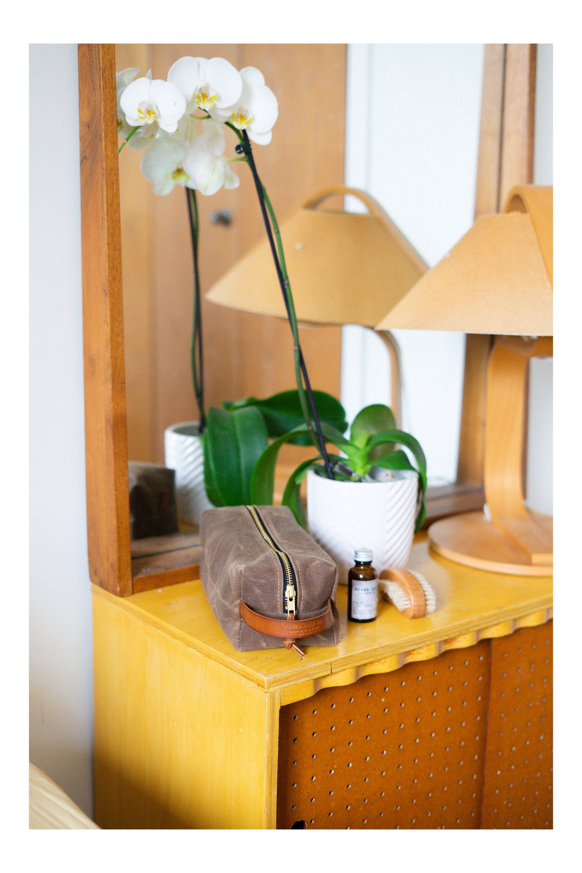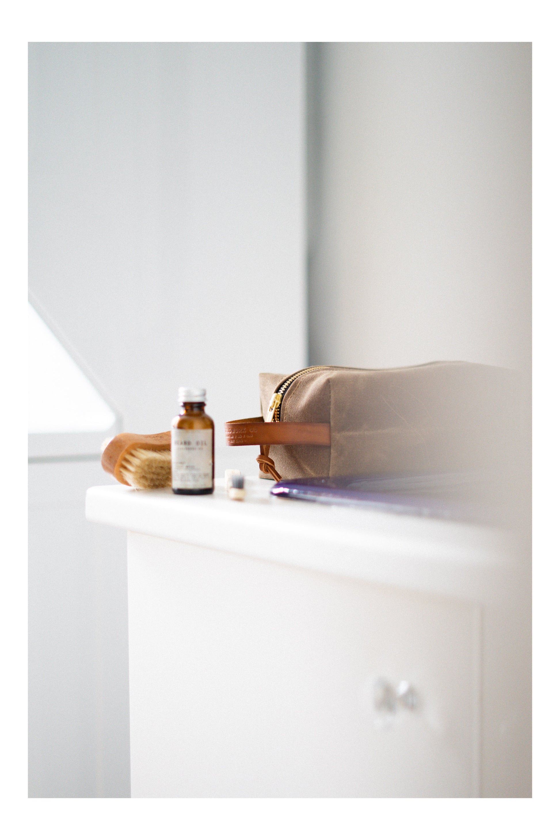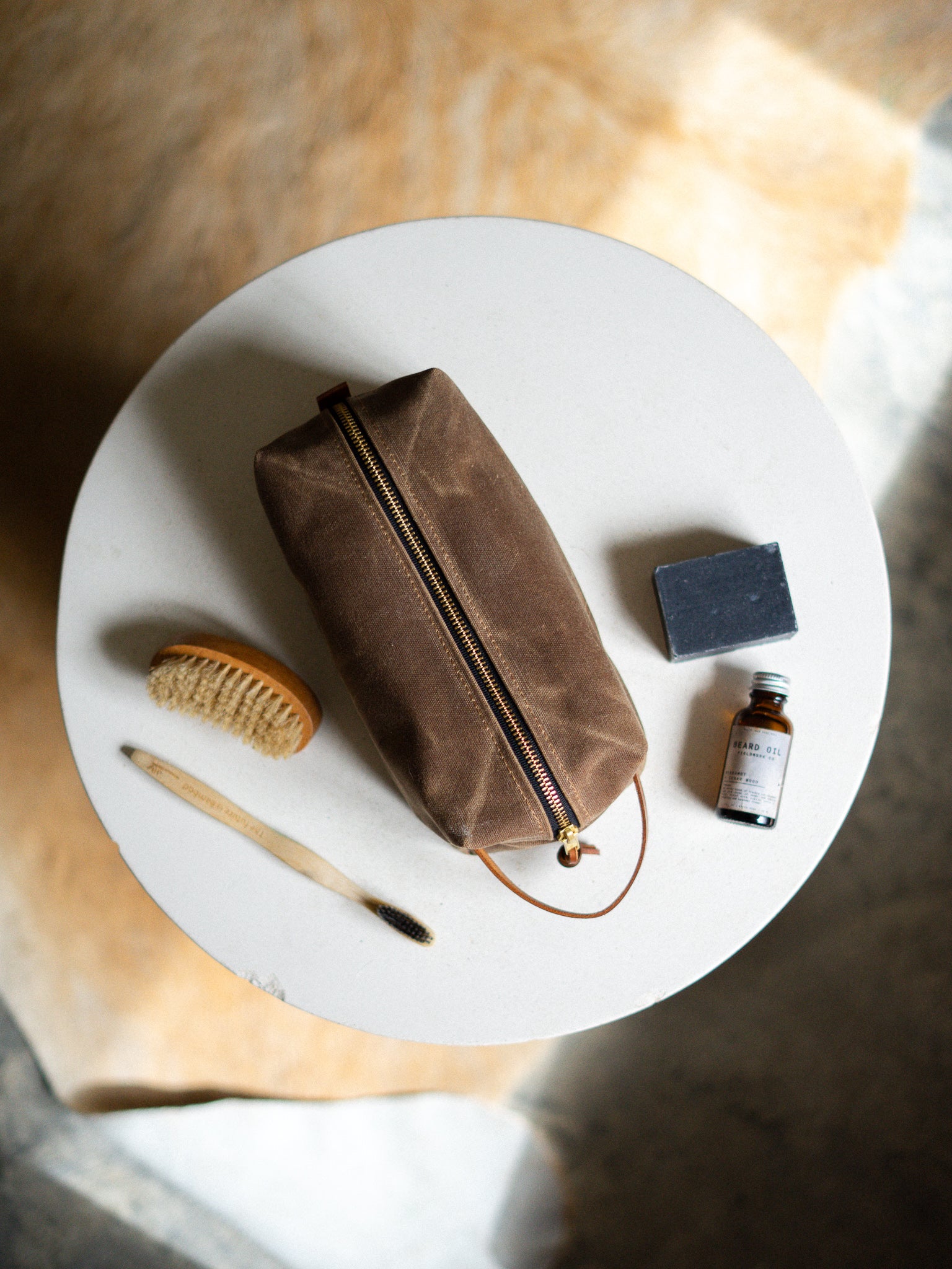 This Dopp Kit is perfect for the weekend traveller. Made out of a rugged 19oz water-resistant waxed canvas and thick vegetable tanned leather handle and details. Accompanied a solid brass YKK zipper. This bag is built to last.