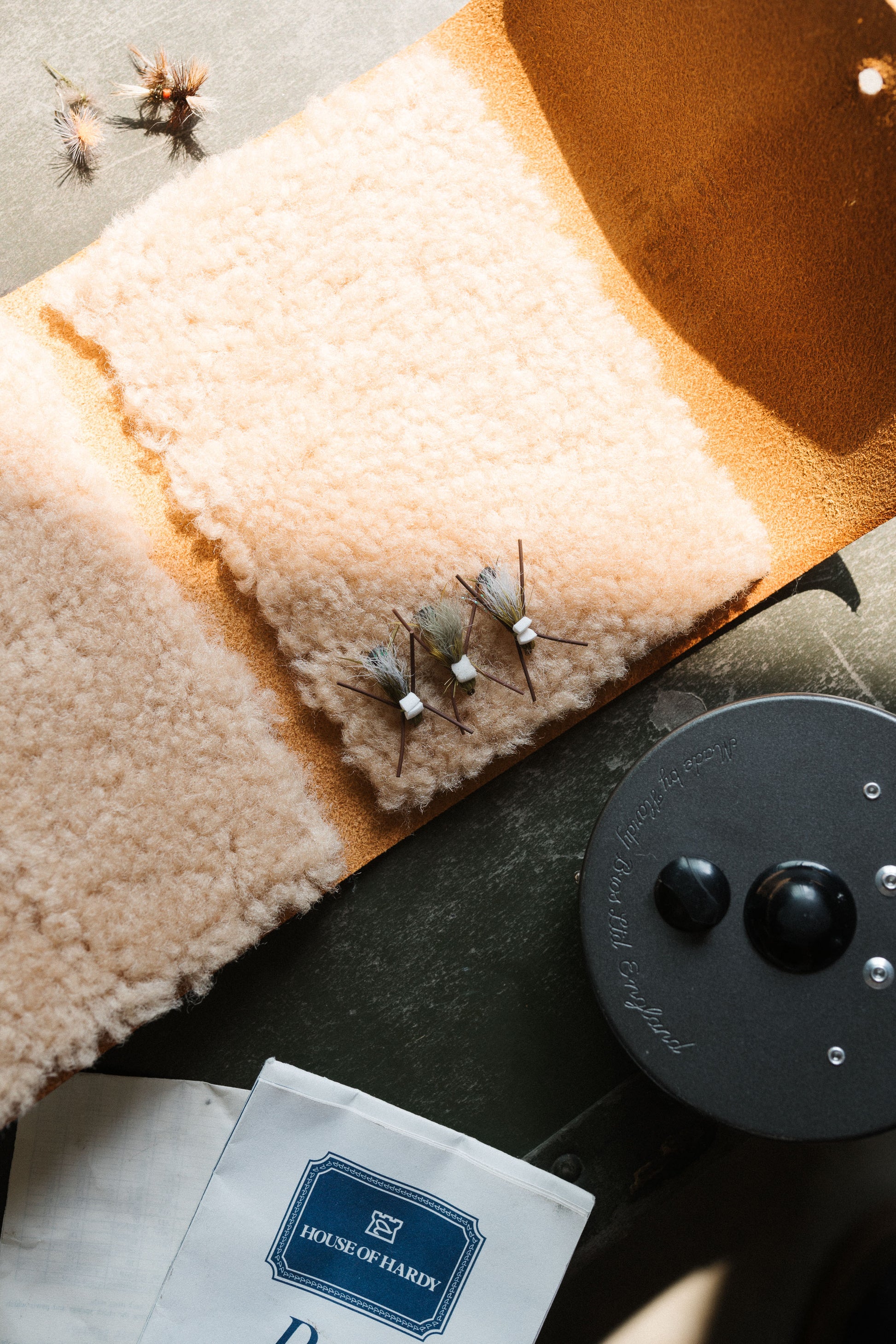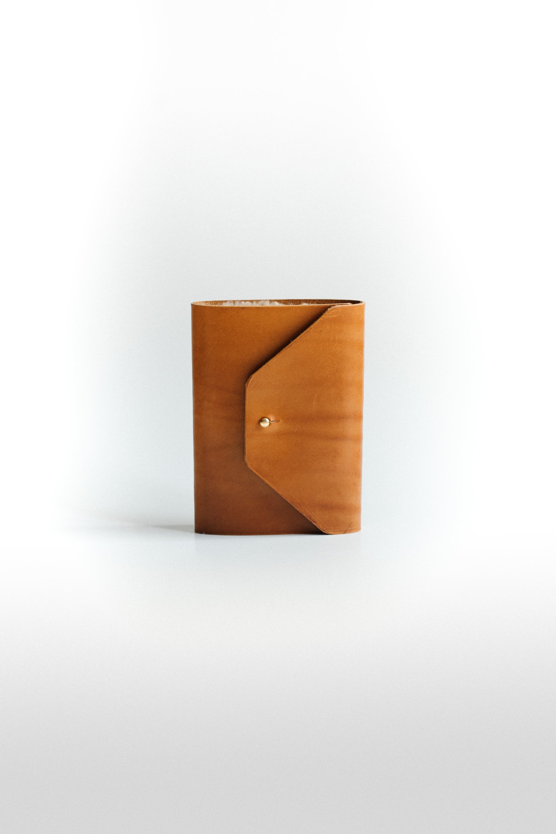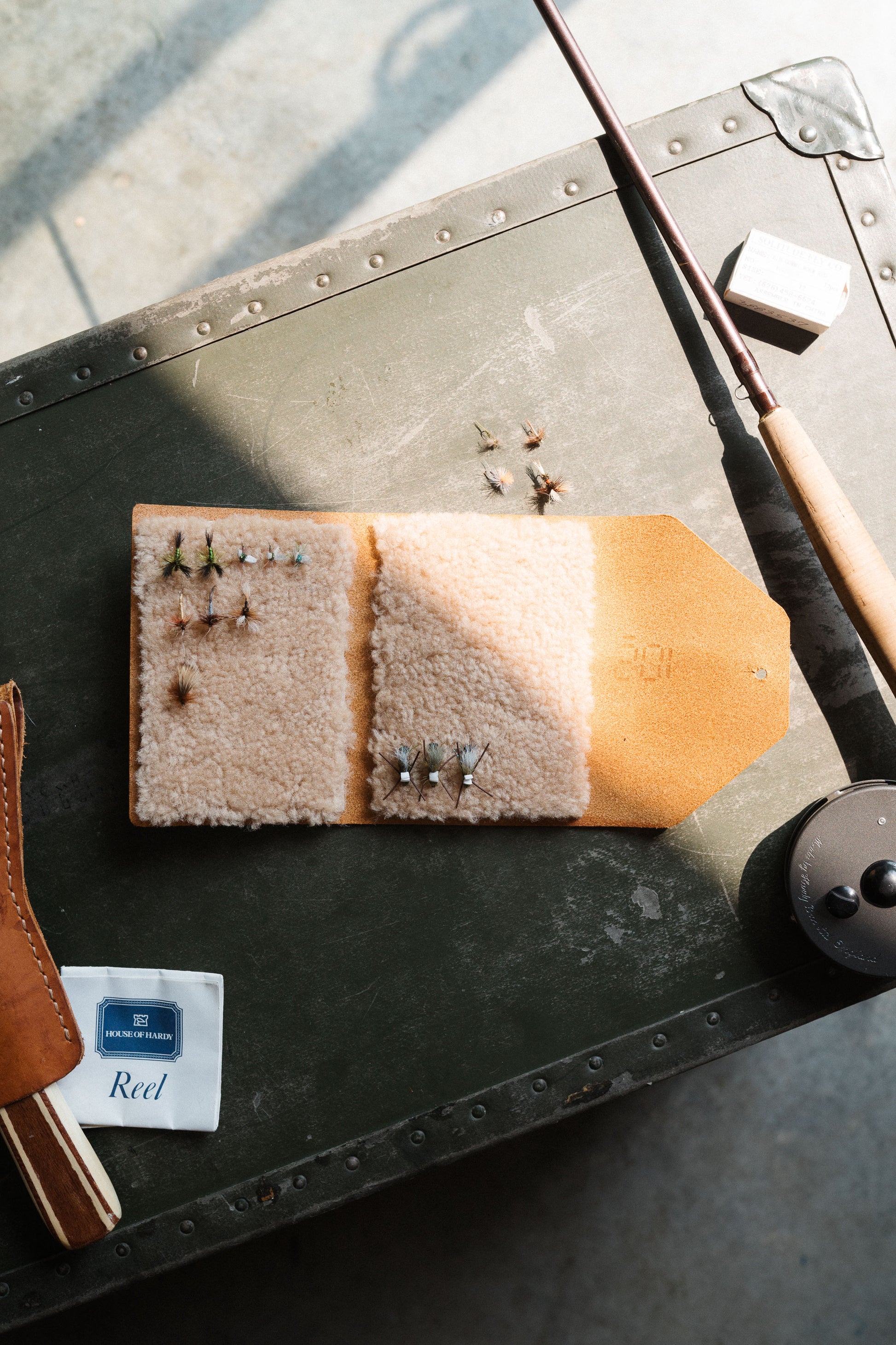 A very simple, yet elegant design; This is our legacy fly wallet, handmade out of premium, 6oz full grain leather matched with high-quality genuine shearling. Finished with a solid brass button stud as the closure