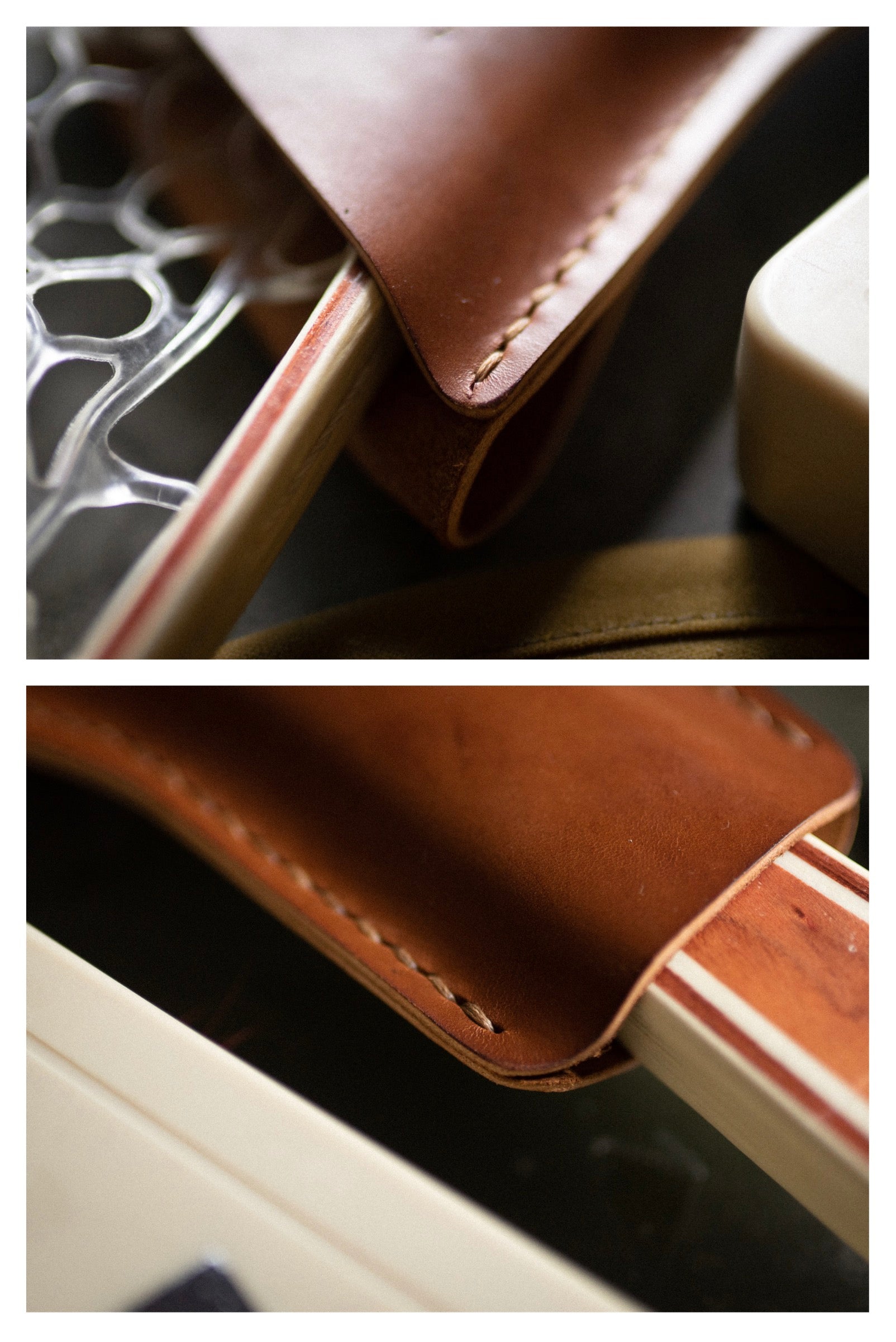 Made out of 6oz hand dyed vegetable tanned leather, hand-stitched using high-quality imported flat waxed thread. All pressure points have been double back stitched for extra durability and longevity.