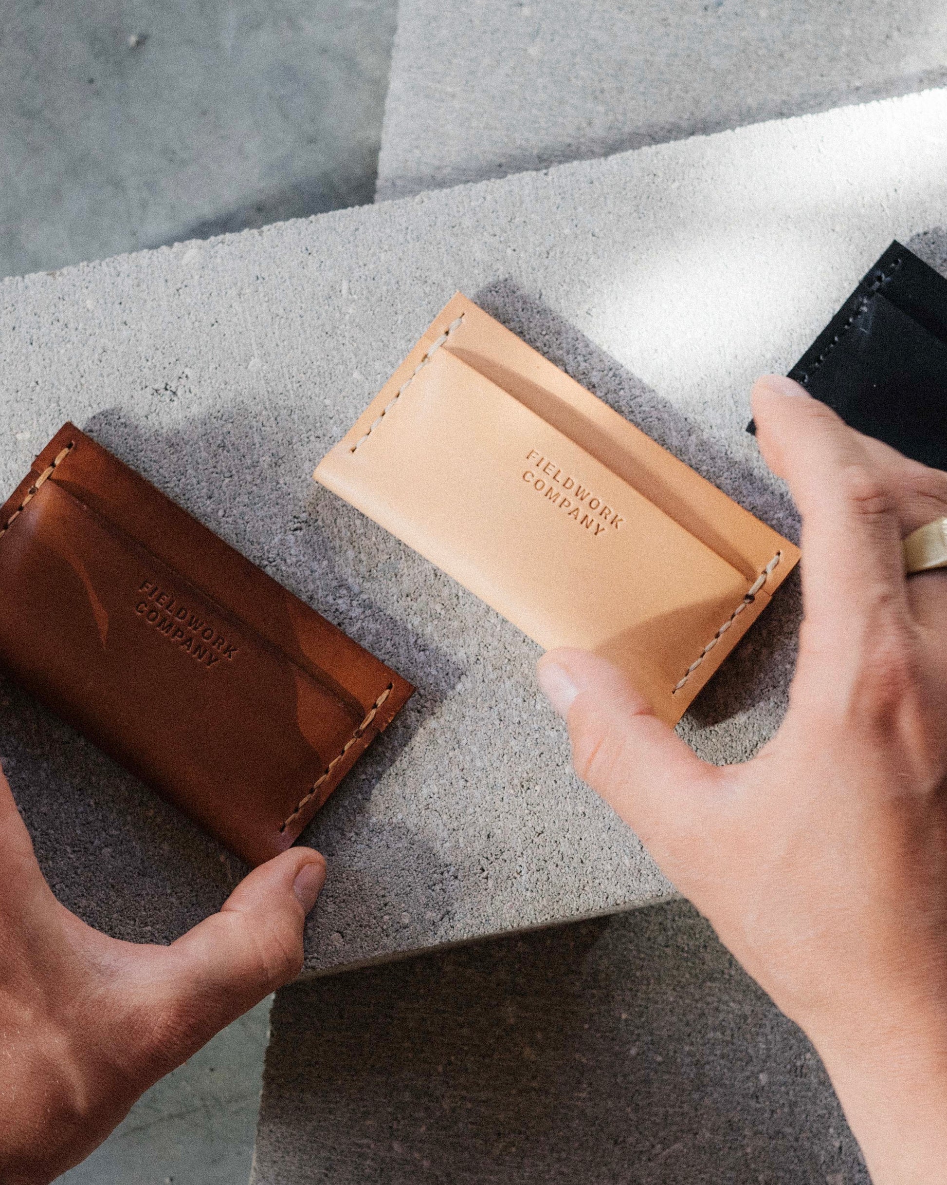 This wallet is a staple for us. Designed to be minimal, and only carry what you need. Made out of the same 5-6oz full-grain leather we use for our camera straps. So you can expect this puppy to age, and patina beautifully.