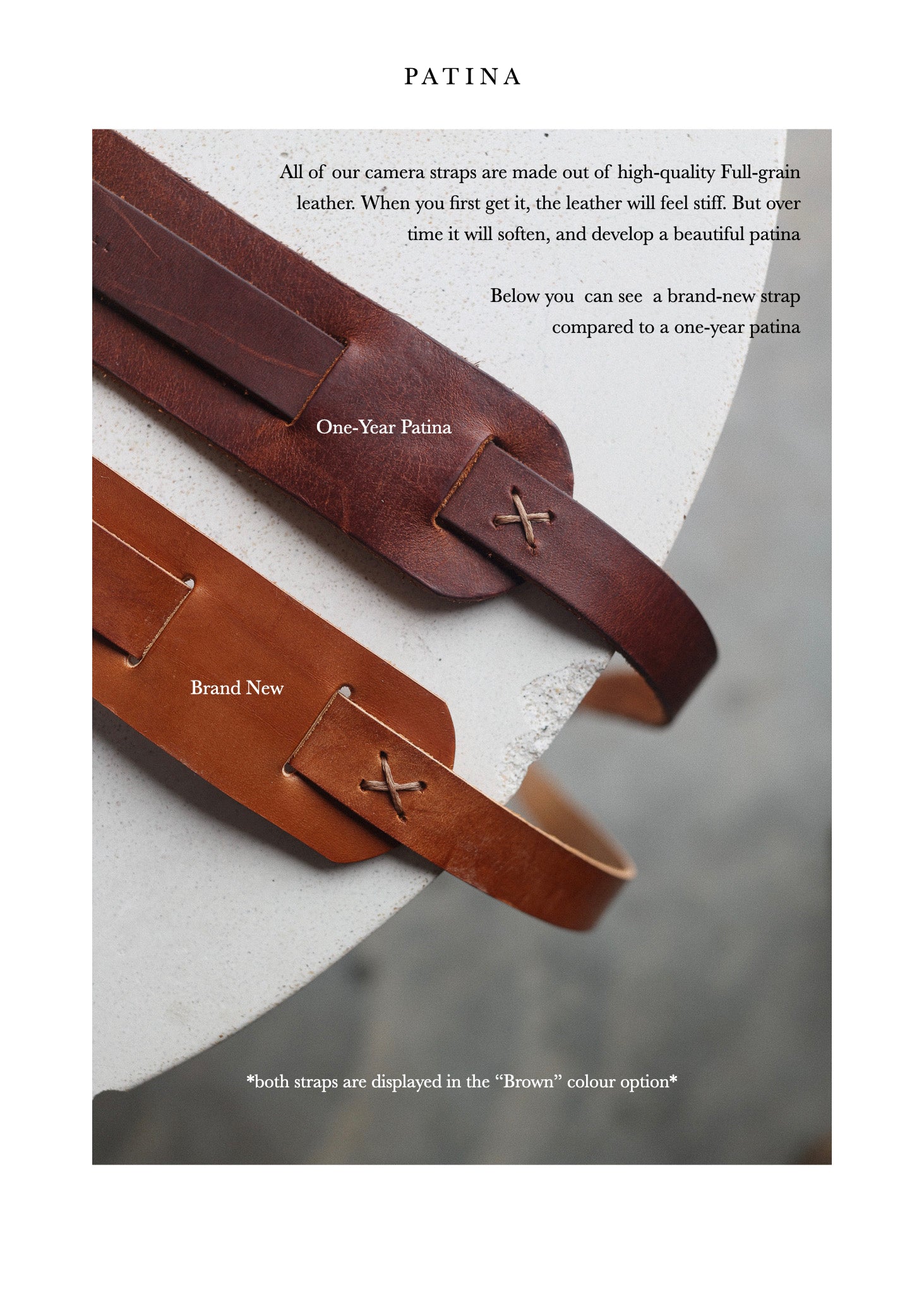 Handmade in Canada, from 6oz genuine full-grain leather, and solid brass components. This piece will soften, and develop a beautiful patina that will be unique to how you use it. Exposure to natural elements, as well as oil from your hands, will speed up this process. Our Natural colourway will darken, and after about a year, take on a rich tan/caramel tone. The brown colour has been hand-dyed, and will only get better looking with time.